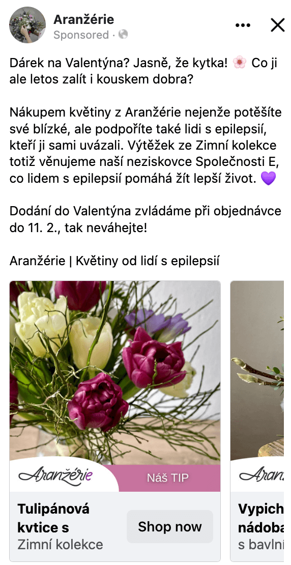 společně jsme vymysleli a vytvořili první kampaně na Facebooku a Instagramu pro Aranžérii. Propagovali jsme květinovou nabídku k příležitosti Valentýna, následně k MDŽ i svatebního servisu.