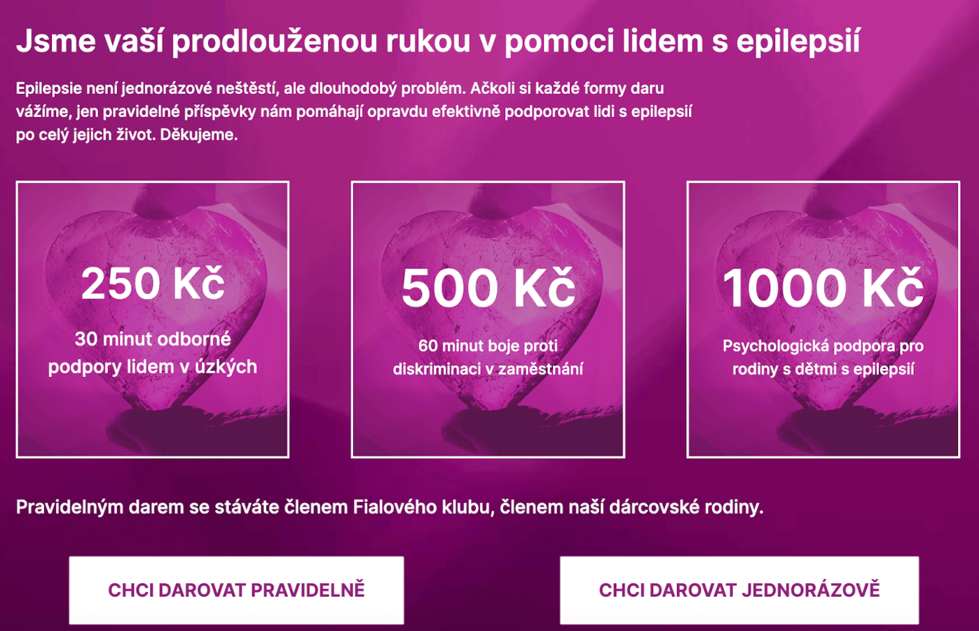 Ukázka kampaně pro Fialový klub