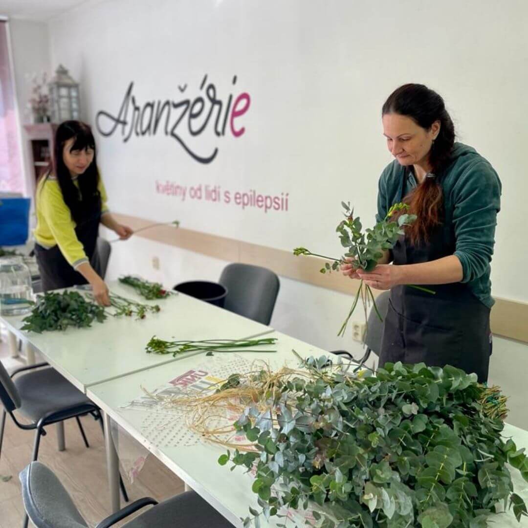 Aranžérie je sociální podnik zaměstnávající lidi s epilepsií. Jde o květinovou dílnu s e‑shopem. Veškerý výtěžek za květiny putuje právě Společnosti E, která tyto prostředky využívá pro další pomoc. Přes Aranžérii si můžete objednat květiny na svatbu, darovat je do domovů pro seniory (projekt Kytka pro babi a dědu) nebo si třeba zajít na workshop vázání či aranžování.